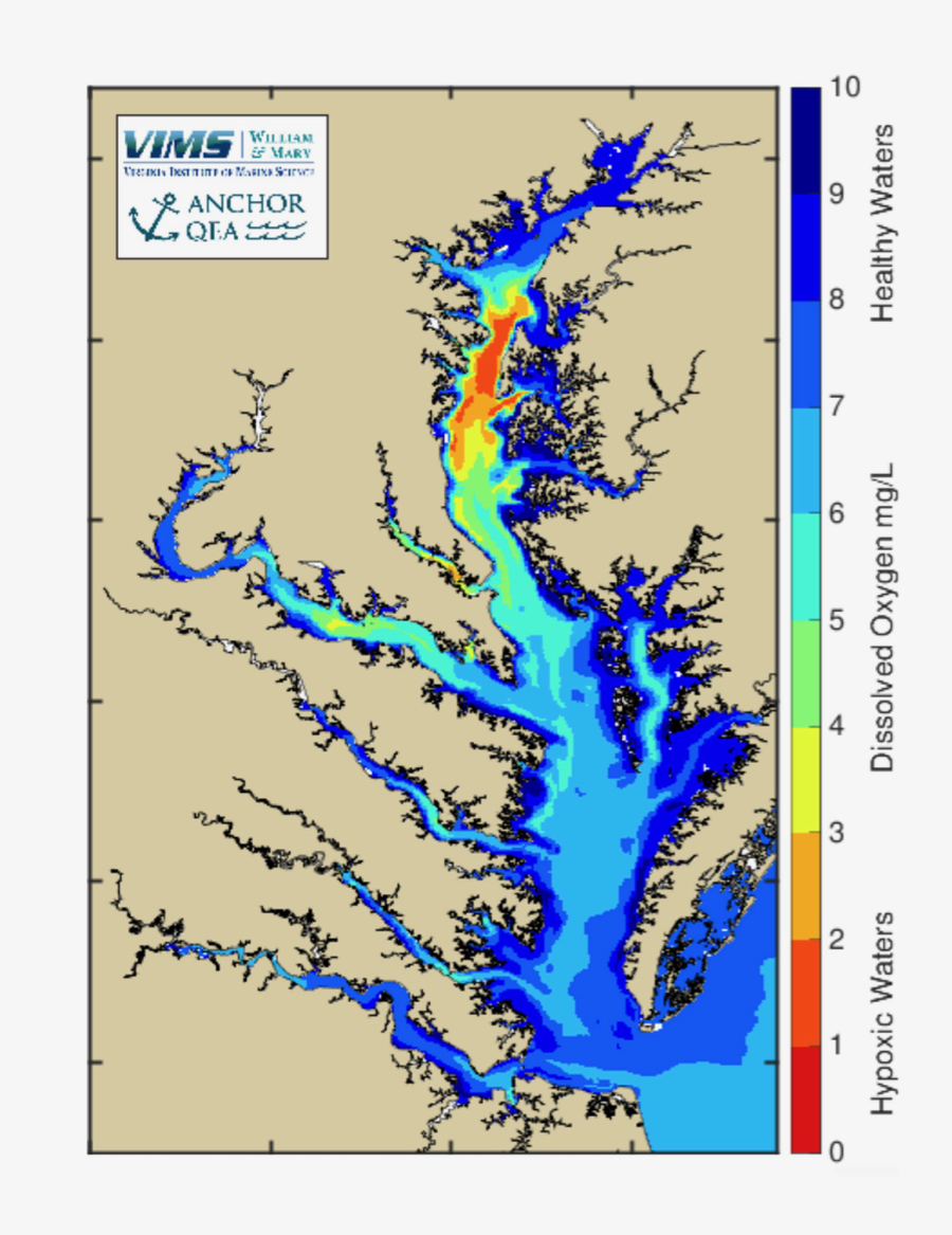Use our forecasts of temperature, salinity, dissolved oxygen, and other physical and chemical factors within the Chesapeake Bay to help monitor Bay health and plan your on-the-water activities. Based on observations and computer models developed by the Virginia Institute of Marine Science and partners, these tools accurately predict the current status of important environmental variables and how they are likely to change in the short-term.