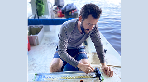 Measuring Scientist Jack Buchanan measures juvenile striped bass from the Pamunkey River. Photo: Samantha Dowiarz