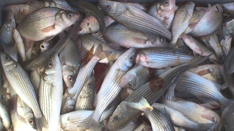 The Juvenile Finfish Trawl Survey typically does not catch many large Striped Bass because they are able to swim faster than the trawl gear. This 835 millimeter (33 inch) individual was caught in the James River in March of 2008.