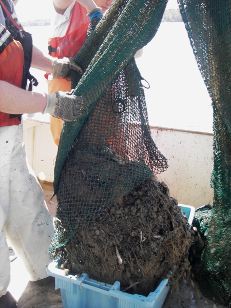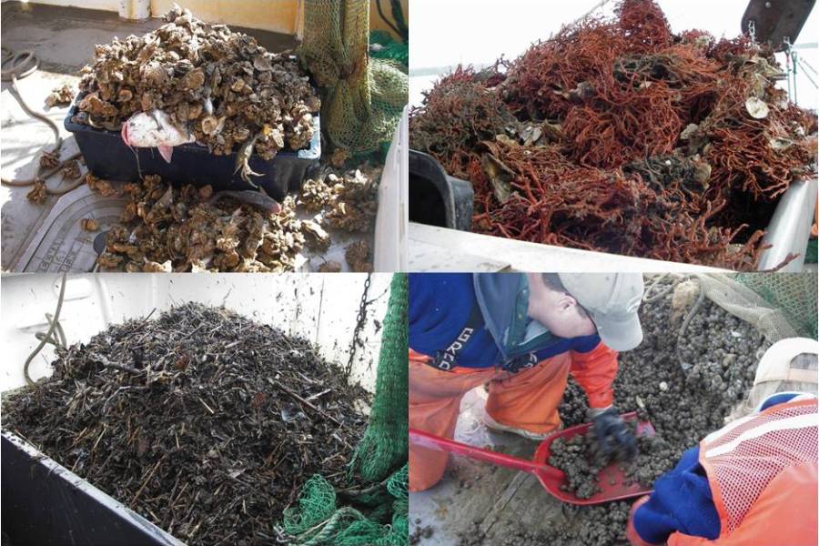 • An abandoned spiny lobster trap off the coast of California. Derelict fishing equipment can continue to trap and kill animals, harming marine ecosystems and competing with actively fished gear.
