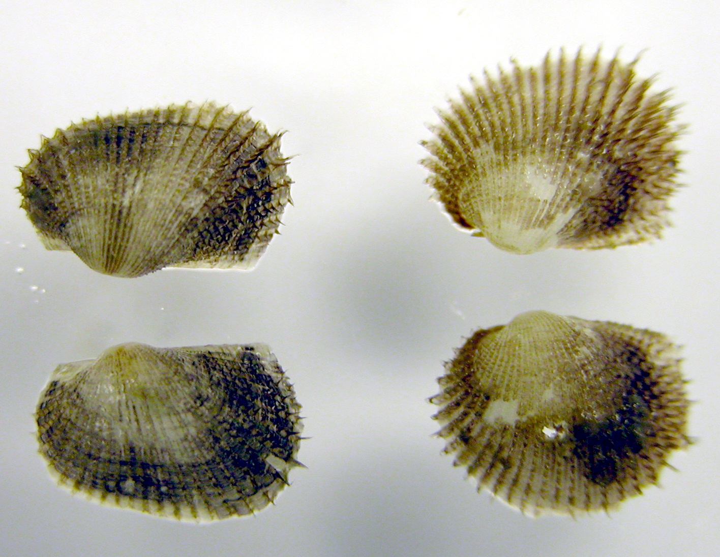 Clams, mussels, scallops, and oysters belong to the taxonomic class, bivalves.  We frequently find clam parts, whether they are broken shell pieces or the soft foot or siphon, in the stomachs of adult bottom feeders such as drums, skates, and stingrays.  We seldomly find whole bivalves, so identification to species is rarely successful.  Some common bivalve prey species that are distinctive enough to positively identify are the common razor clam, stout tagelus, and ark shells.