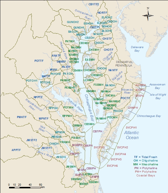 Organizational ProceduresBlack-and-white aerial photography at a scale of 1:24,000 and digital imagery was the principal source of information used to assess distribution and abundance of SAV in Chesapeake Bay, its tributaries, and the Delmarva Peninsula coastal bays from Assawoman Bay to Magothy Bay in 2014. There were 168 flight lines that yielded aerial photography negatives that were scanned and orthorectified to create orthophoto mosaics. These mosaics were carefully examined on-screen and outlines were drawn to identify all SAV beds visible on the photography, providing a geographic information system (GIS) digital database for analysis of bed areas and locations.Ground survey information collected in 2014 was tabulated and entered into the VIMS SAV GIS digital database. The CBP Segmentation scheme defines 93 segments that are grouped into four salinity zones to reflect the communities of SAV species found in the Chesapeake Bay: