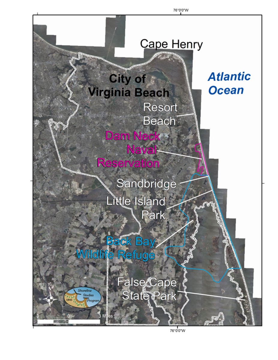 Virginia’s southeast ocean coast consists of the City of Virginia Beach, Naval Air Station Oceana Dam Neck Annex, Back Bay National Wildlife Refuge, and False Cape State Park.