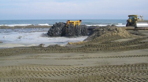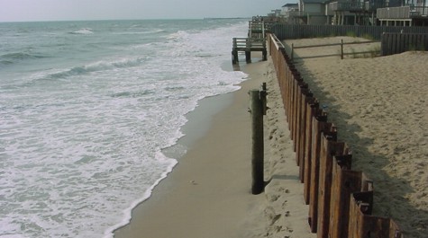 Historically, Sandbridge residences have been continually threatened by erosion. Various methods of shoreline management have been used over time at Sandbridge. Bulkheads were built to protect houses, but scour, particularly during storms caused bulkhead failures. Beach scraping to create a backshore mound of sand and dune fencing were temporary solutions. To protect property and provide beaches for tourism, the City of Virginia Beach began renourishing Little Island and Sandbridge. Sand is dredged from shoals offshore and pumped onto the beach where it is spread by heavy equipment.