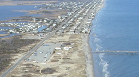 Naval Air Station Oceana Dam Neck Annex is located in the middle of the City of Virginia Beach’s Atlantic shore, which provides unique facilities for training. Dam Neck also has been renourished regularly to maintain a wide, protective beach. In addition, a large dune was built to protect upland infrastructure from storm surge. This large dune has a rock core that will hold the shoreline if the entire dune is lost. The front of the dune has eroded during storm events, but installing sand fences after small events and renourishing after large has maintained a protective dune on the ocean coast.