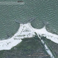 • The impacts of purple marsh crabs on salt marshes can be viewed from space. The crabs leave expansive, fan-shaped mudflats as they burrow into the marsh and consume large swaths of cordgrass. Photo by Virginia Sea Grant