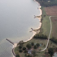 This site is a working farm that has a long fetch to southeast of over 20 miles. Funding restraints and positive results of VIMS' study of the Hog Island Headland and Summerille sites led to the installation of a 1,700 ft headland control system in 1995. Three widely spaced headland breakwaters were constructed and one large spur/breakwater upriver was used to set the embayment. The headland control method consists of breakwaters that are placed close to shore to insure long-term connection and the adjacent upland banks are allowed to erode to equilibrium. The project was designed utilizing shore morphology evolution.